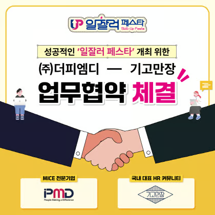 MICE 전문기업 ㈜더피엠디은 HR 커뮤니티 기고만장(기업문화를 고민하는 만인의 장)과 업무 생산성, 일하는 방식의 전환, 직무 역량 강화를 아우르는 '2025 일잘러 페스타'의 성공적인 개최를 위해 전략적 업무협약을 체결했다고 19일 밝혔다.